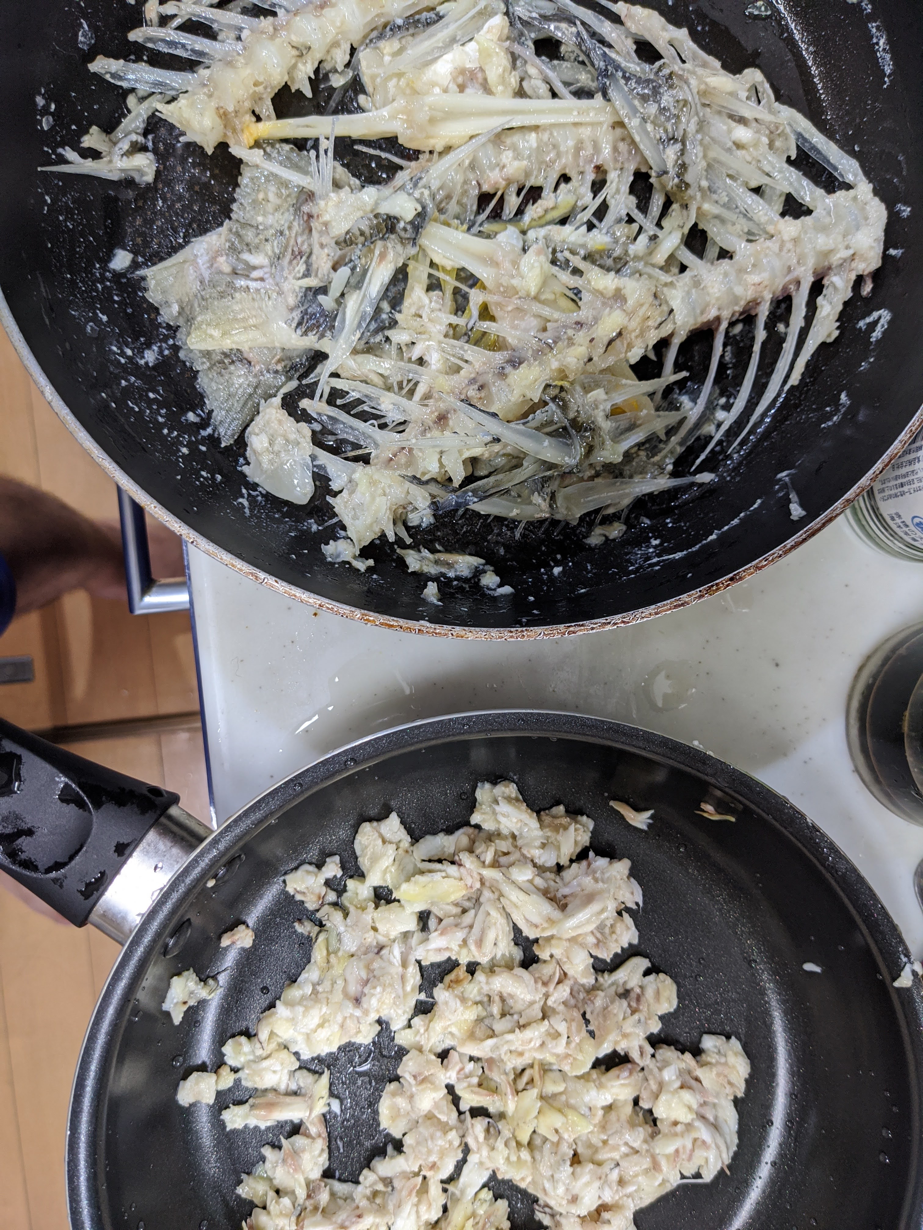 どう食うかな、と思案して、ムニエルに。出したら、息子どもが「うまい、うまい」とあっという間に食い尽くされました。これはこれで嬉しいナと。